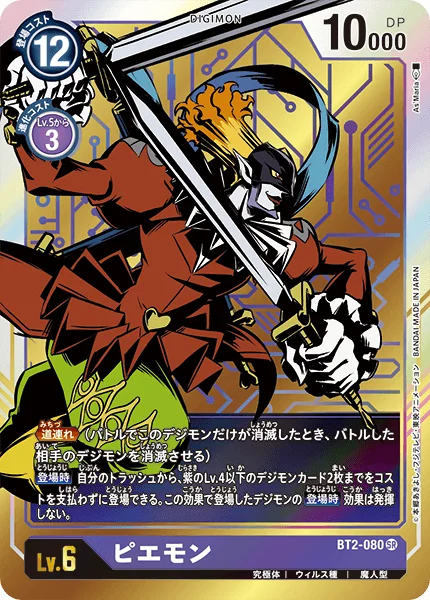 Retaliation (When this Digimon is deleted after losing a battle, delete the Digimon it was battling.)On Play You may play up to 2 level 4 or lower purple Digimon cards from your trash without paying their memory costs. Any On Play effects on Digimon played with this effect don't activate.