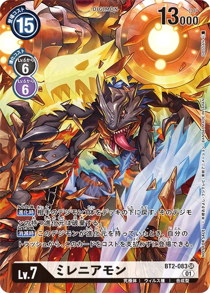 When Digivolving Return 1 of your opponent's Digimon to the bottom of their deck. (Trash all of the digivolution cards of that Digimon.)On Deletion If this card had digivolution cards, you may play this card from your trash without paying its memory cost.