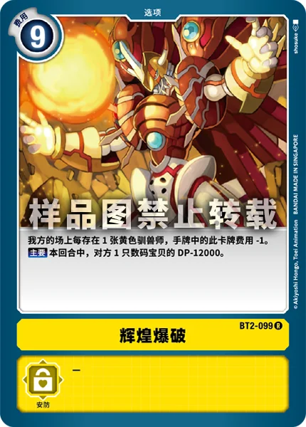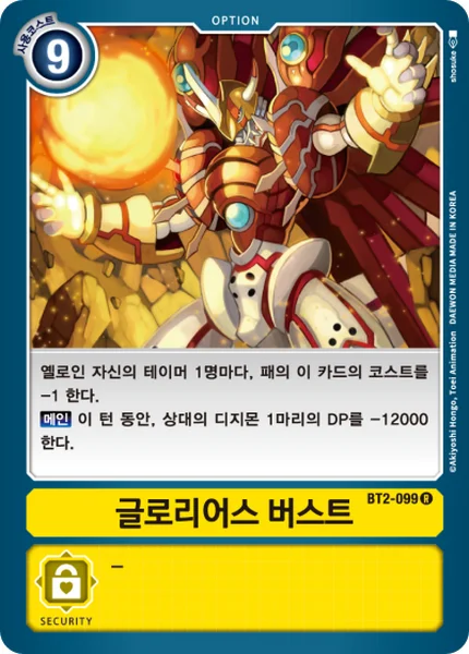 Reduce the memory cost of this card in your hand by 1 for each yellow Tamer you have in play.Main 1 of your opponent's Digimon gets -12000 DP for the turn.