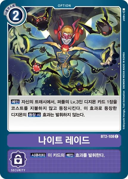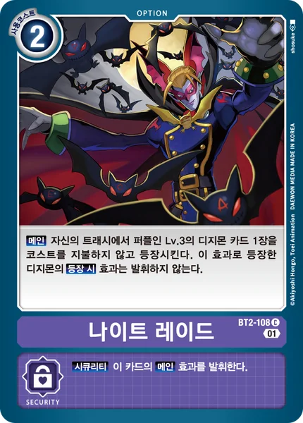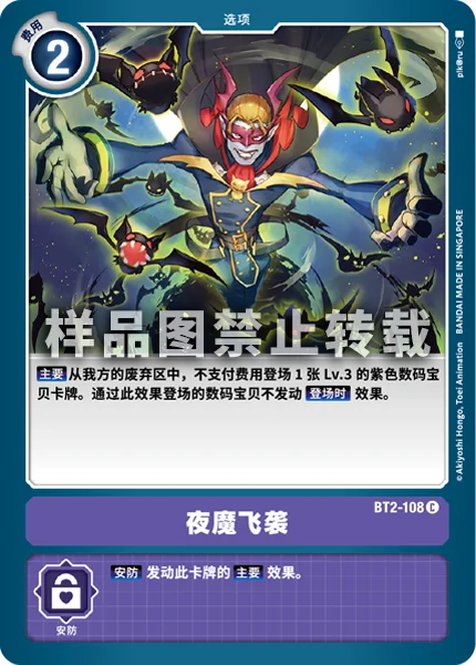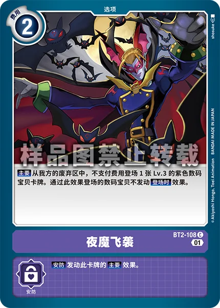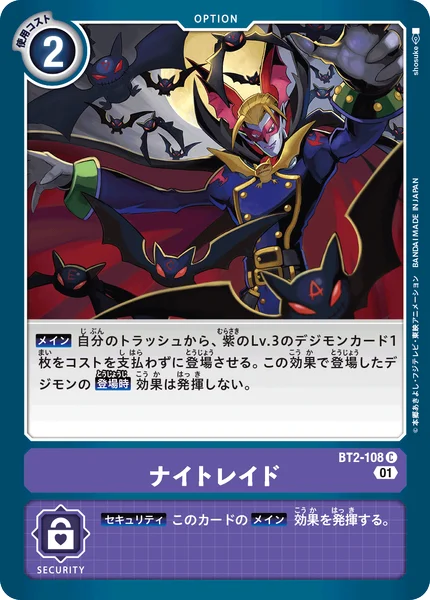 Main Play 1 purple level 3 Digimon card from your trash without paying its memory cost. Any On Play effects on the Digimon played with this effect don't activate.