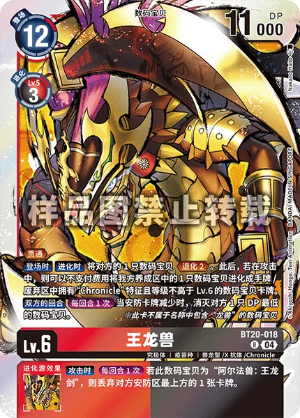 On Play When Digivolving De-Digivolve 2 1 of your opponent's Digimon. Then, if during an attack, 1 of your Digimon in the breeding area may digivolve into a level 6 or lower [Chronicle] trait Digimon card in the hand or trash without paying the cost.