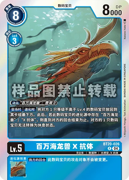 On Play When Digivolving Return 1 of your opponent's level 4 or lower Digimon to the bottom of the deck. Then, if [MegaSeadramon] or [X Antibody] is in this Digimon's digivolution cards, 1 of your opponent's Digimon can't suspend until the end of their turn.