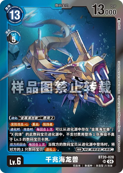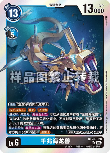 All Turns Once Per Turn When any of your Digimon are played from digivolution cards, De-Digivolve 2 1 of your opponent's Digimon. Rule Trait: Has [Aquatic] Type.