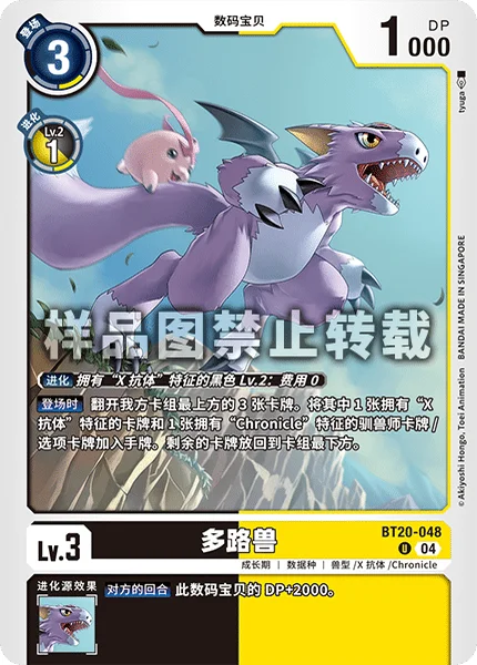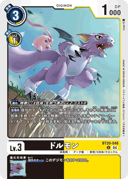 On Play Reveal the top 3 cards of your deck. Add 1 card with the [X Antibody] trait and 1 Tamer card or Option card with the [Chronicle] trait among them to the hand. Return the rest to the bottom of the deck.
