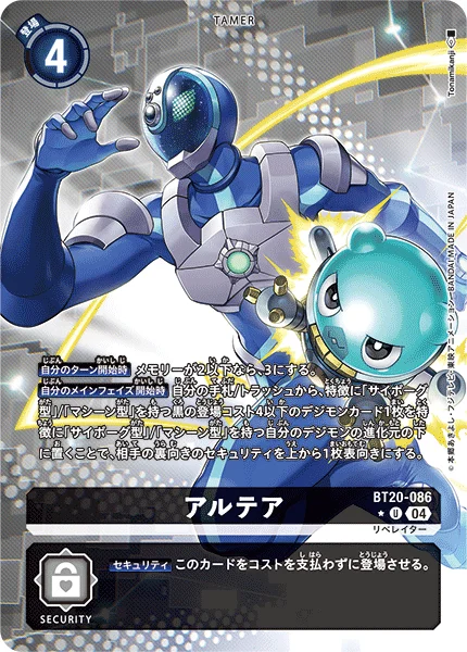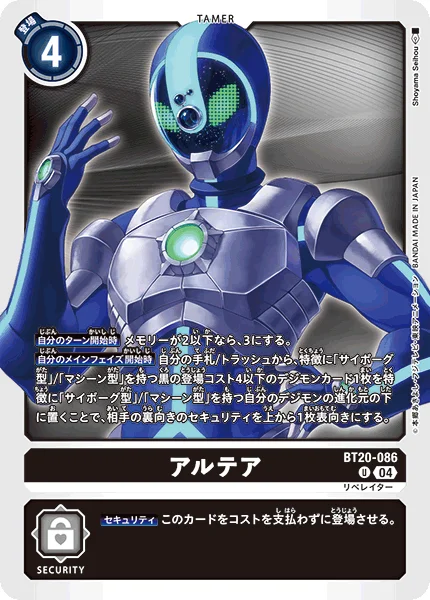 Start of Your Main Phase By placing 1 play cost 4 or lower black Digimon card with the [Cyborg] or [Machine] trait from your hand or trash as any of your [Cyborg] or [Machine] trait Digimon's bottom digivolution card, flip your opponent's top face-down security card face up.