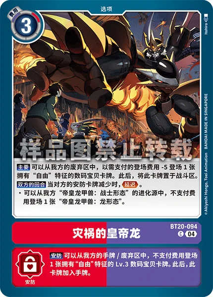 Security You may play 1 level 3 Digimon card with the [Free] trait from your hand or trash without paying the cost. Then, add this card to the hand.