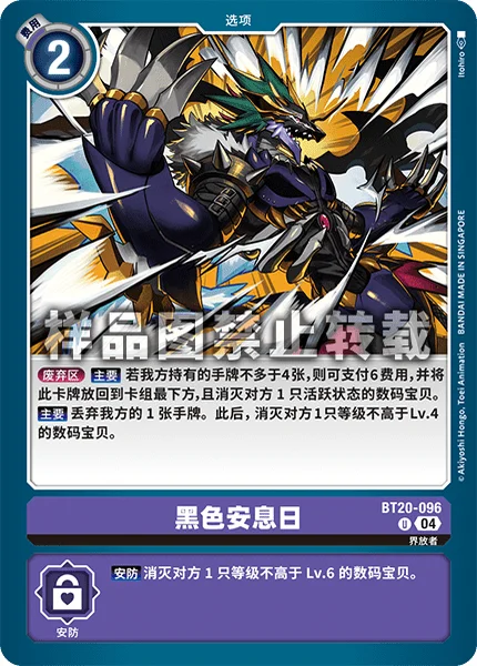 Trash Main If you have 4 or fewer cards in your hand, by paying 6 cost, return this card to the bottom of the deck and delete 1 of your opponent's unsuspended Digimon.