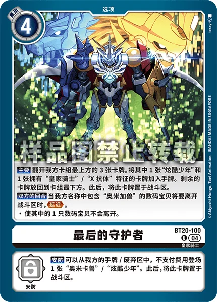 All Turns When any of your Digimon with [Omnimon] in their names would leave the battle area, Delay. ・1 of those Digimon doesn't leave.