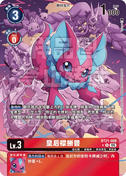 On Play Reveal the top 3 cards of your deck. Add 1 card with the [Reptile] or [Dragonkin] trait and 1 card with the [LIBERATOR] trait among them to the hand. Return the rest to the bottom of the deck.