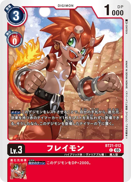 Main By suspending this Digimon, you may play 1 red Tamer card with inherited effects from your hand without paying the cost. If you did, place this Digimon under the played Tamer.