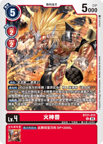 When Attacking This Digimon may digivolve into a red [Hybrid] or [Hero] trait Digimon card in the hand with the digivolution cost reduced by 1.