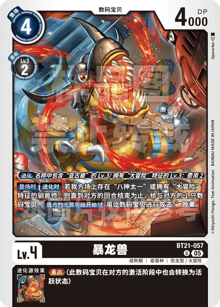 On Play When Digivolving If you have [Tai Kamiya] or a Tamer with the [ADVENTURE] trait, give 1 of your opponent's Digimon "Start of Your Main Phase This Digimon attacks." until their turn ends.