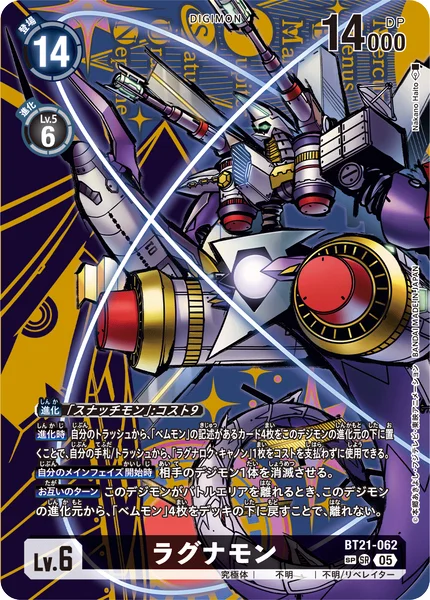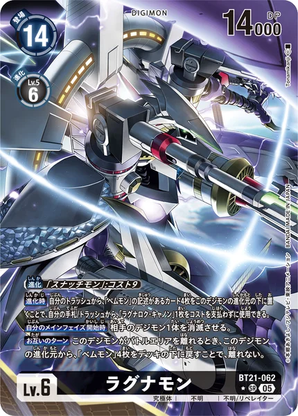 When Digivolving By placing 4 cards with [Vemmon] in their texts from your trash as this Digimon's bottom digivolution cards, you may use 1 [Ragnarok Cannon] from your hand or trash without paying the cost.