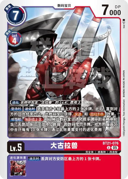 On Play When Digivolving Trash the top 2 cards of your deck. Then, this Digimon gains Raid and Retaliation until your opponent's turn ends.