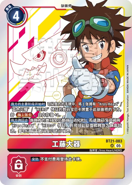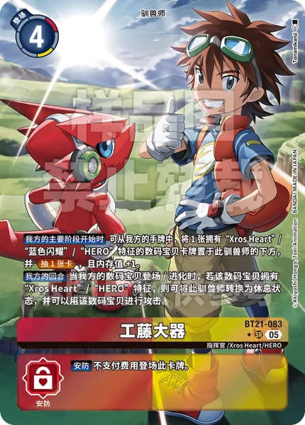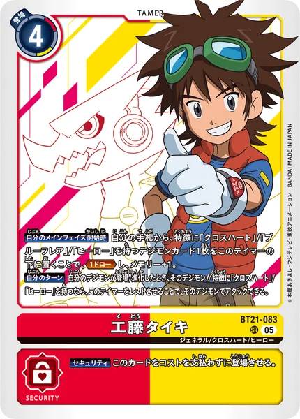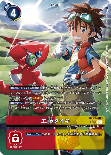 Start of Your Main Phase By placing 1 Digimon card with the [Xros Heart], [Blue Flare] or [Hero] trait from your hand under this Tamer, Draw 1 and gain 1 memory.