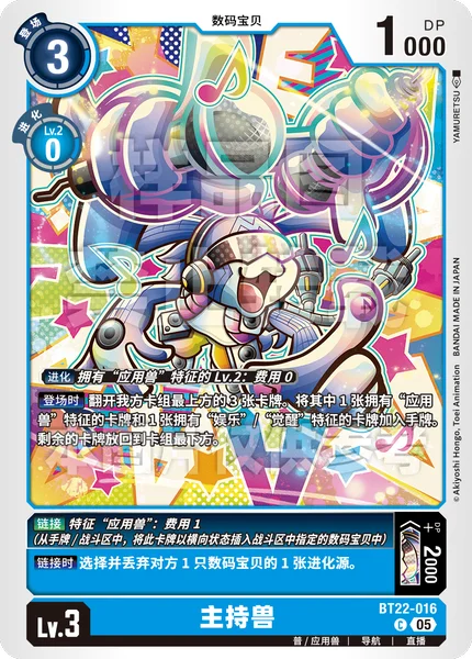 On Play Reveal the top 3 cards of your deck. Add 1 card with the [Appmon] trait and 1 card with the [Entertainment] or [Awakening] trait among them to the hand. Return the rest to the bottom of the deck.