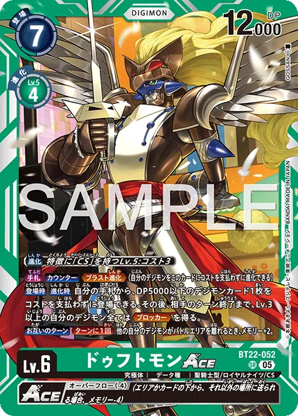 On Play When Digivolving You may play 1 5000 DP or lower Digimon card from your hand without paying the cost. Then, all of your level 3 or higher Digimon gain Blocker until your opponent's turn ends.