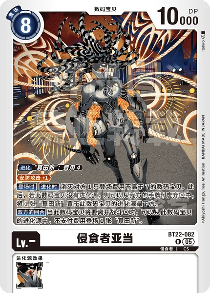 On Play When Digivolving Delete 1 of your opponent's play cost 7 or lower Digimon. Then, if this Digimon has no digivolution cards, you may place 1 [Arata Sanada] from your hand or trash as this Digimon's bottom digivolution card.