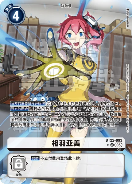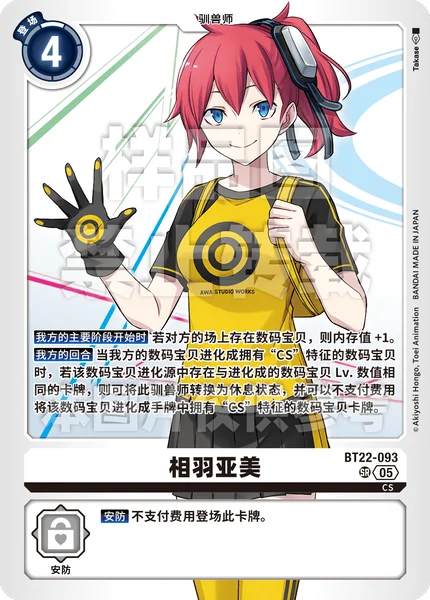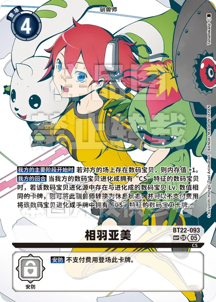 Your Turn When any of your Digimon digivolve into a Digimon with the [CS] trait, if it has a digivolution card with the same level as the digivolved Digimon, by suspending this Tamer, that Digimon may digivolve into a Digimon card with the [CS] trait in the hand without paying the cost.