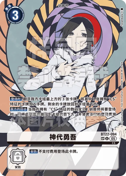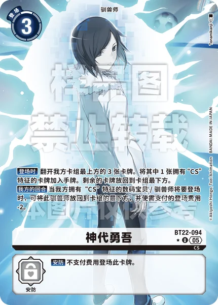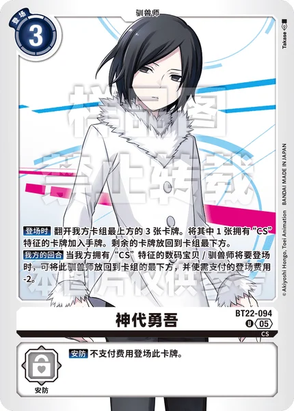 Your Turn When any of your Digimon or Tamers with the [CS] trait would be played, by returning this Tamer to the bottom of the deck, reduce the play cost by 2.