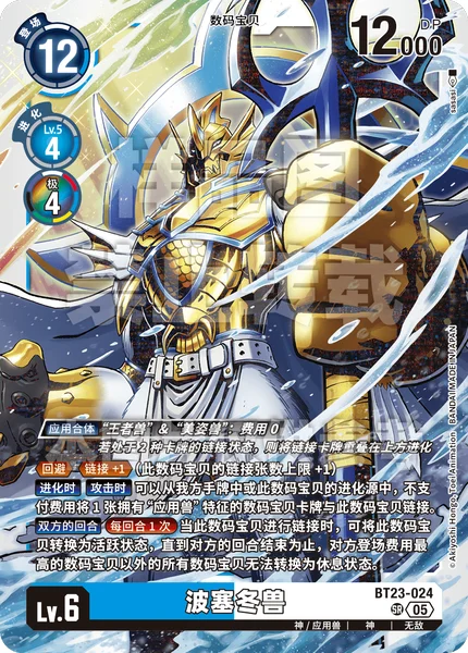 All Turns Once Per Turn When this Digimon gets linked, by unsuspending it, other than their highest play cost Digimon, none of your opponent's Digimon can suspend until their turn ends.