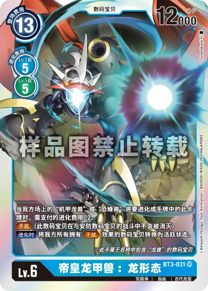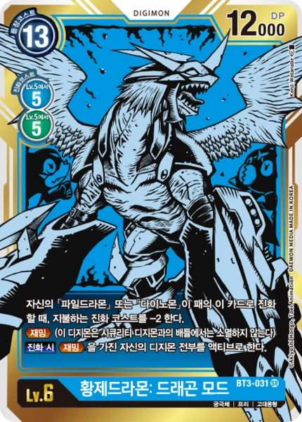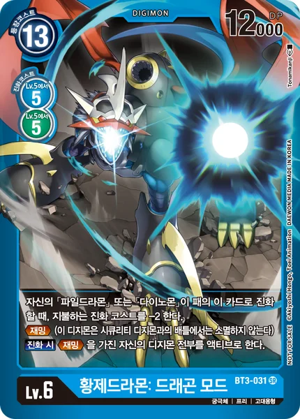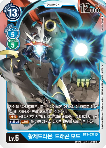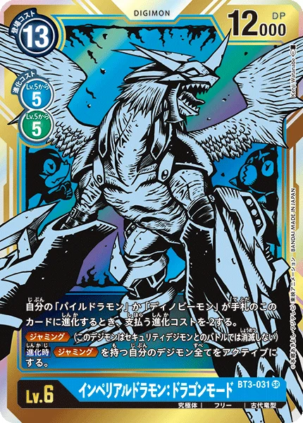 When one of your [Paildramon] or [Dinobeemon] would digivolve into this card in your hand, reduce the memory cost of the digivolution by 2.Jamming (This Digimon can't be deleted in battles against Security Digimon.)When Digivolving Unsuspend all of your Digimon with Jamming.