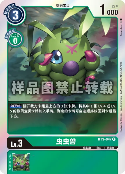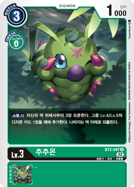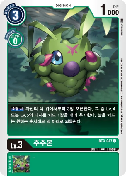 On Deletion Reveal the top 3 cards of your deck. Add 1 level 4 or 5 Digimon card among them to your hand. Place the remaining cards at the bottom of your deck in any order.