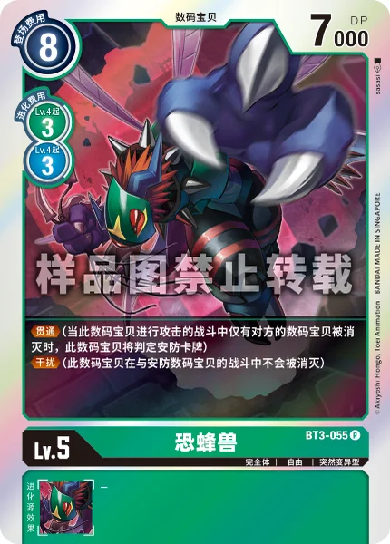 Piercing (When this Digimon attacks and deletes an opponent's Digimon and survives the battle, it performs any security checks it normally would.)Jamming (This Digimon can't be deleted in battles against Security Digimon.)