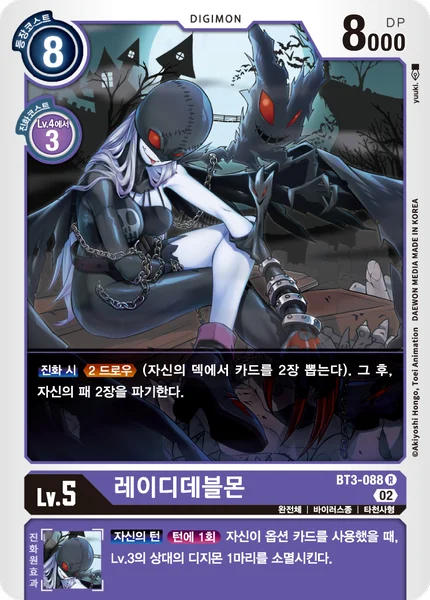 Your TurnOnce Per Turn When you use an Option card, delete 1 of your opponent's level 3 Digimon.