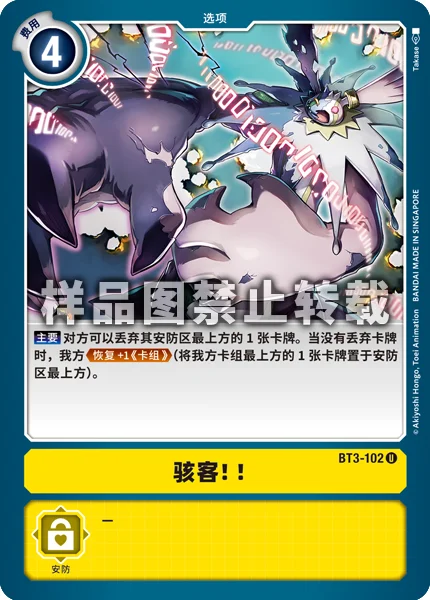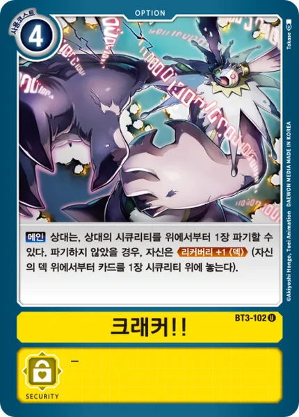 Main Your opponent may trash the top card of their security stack. If they don't, trigger Recovery +1 (Deck). (Place the top card of your deck on top of your security stack.)
