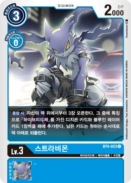 On Play Reveal the top 3 cards of your deck. Add 1 Digimon card with [Hybrid] in its form and/or 1 blue Tamer card among them to your hand. Place the remaining cards at the bottom of your deck in any order.