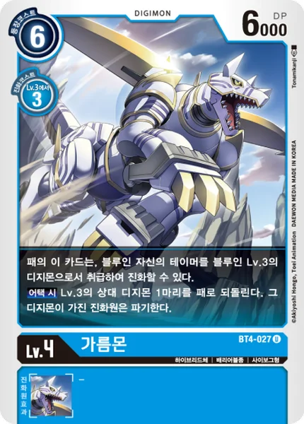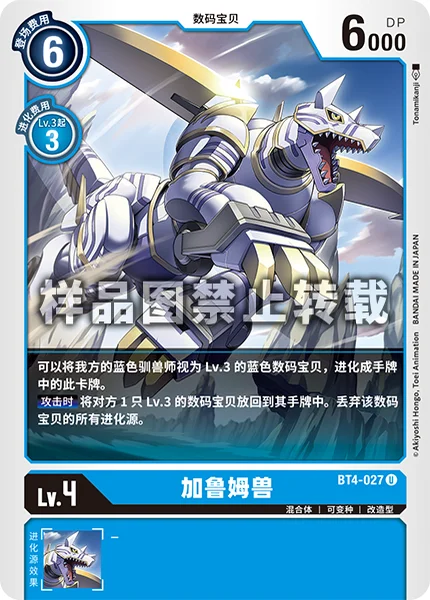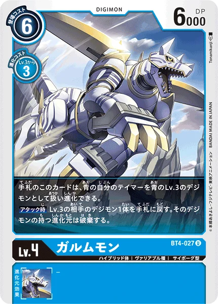 You may Digivolve this card from your hand onto one of your blue Tamers as if the Tamer is a level 3 Digimon.When Attacking Return 1 of your opponent's level 3 Digimon to its owner's hand. Trash all of the digivolution cards of that Digimon.