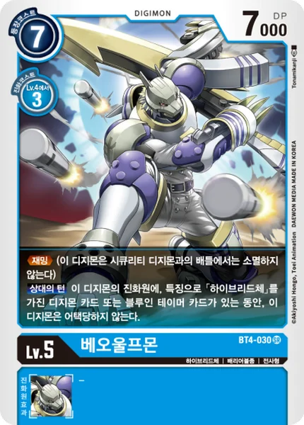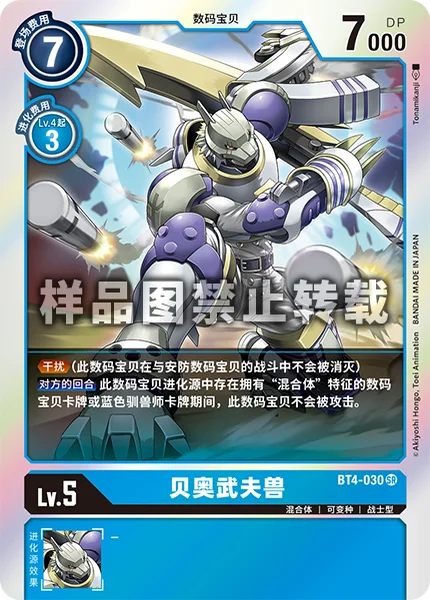 Jamming (This Digimon can't be deleted in battles against Security Digimon.)Opponent's Turn While this Digimon's digivolution cards include a Digimon card with [Hybrid] in its form or a blue Tamer card, it can't be attacked.