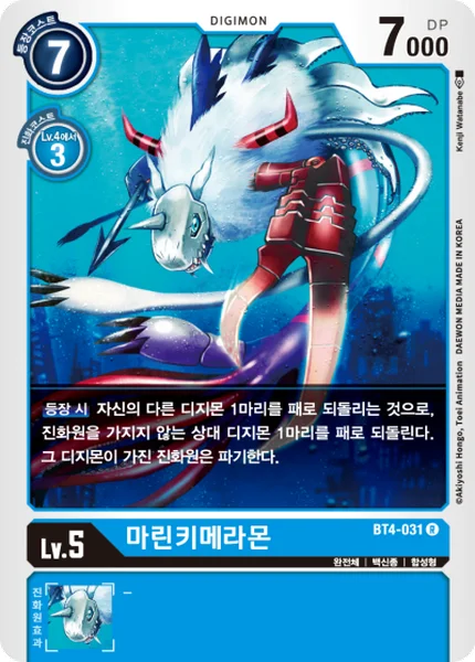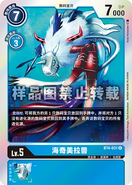 On Play You may return 1 of your other Digimon to its owner's hand to return 1 of your opponent's Digimon with no digivolution cards to its owner's hand. Trash all of the digivolution cards of your Digimon.