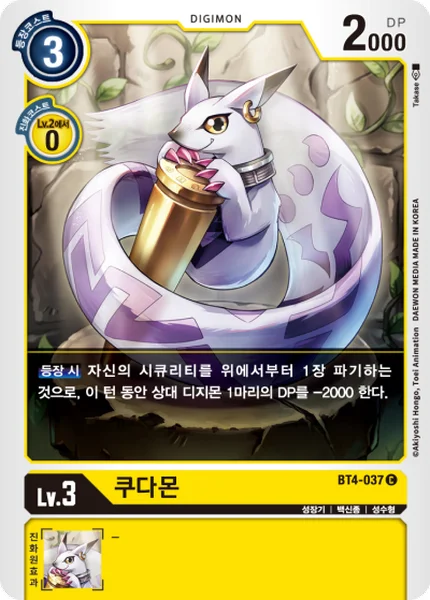 [On Play] You may trash the top card of your security stack to have 1 of your opponent's Digimon get -2000 DP for the turn.