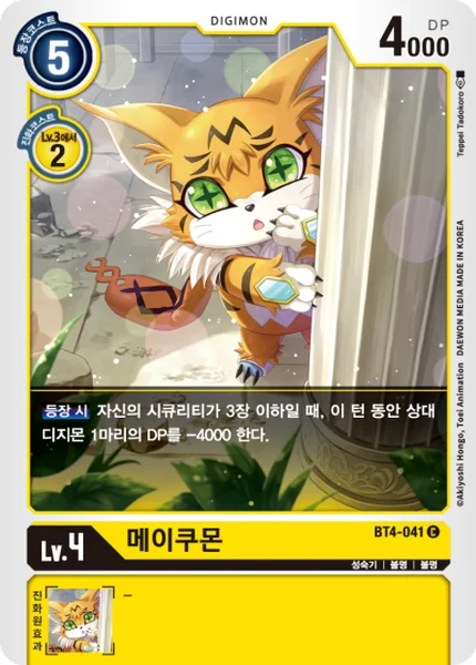 On Play If you have 3 or fewer security cards, 1 of your opponent's Digimon gets -4000 DP for the turn.