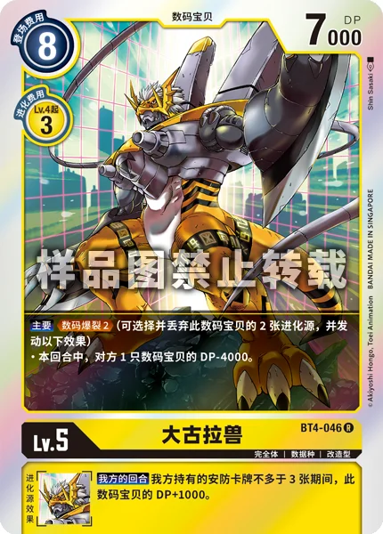 Main Digi-Burst 2 (Trash 2 of this Digimon's digivolution cards to activate the effect below.)・1 of your opponent's Digimon gets -4000 DP for the turn.