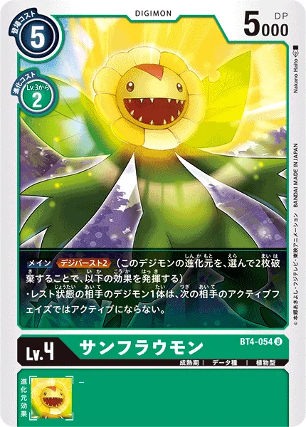 Main Digi-Burst 2 (Trash 2 of this Digimon's digivolution cards to activate the effect below.)・1 of your opponent's suspended Digimon doesn't unsuspend during your opponent's next unsuspend phase.