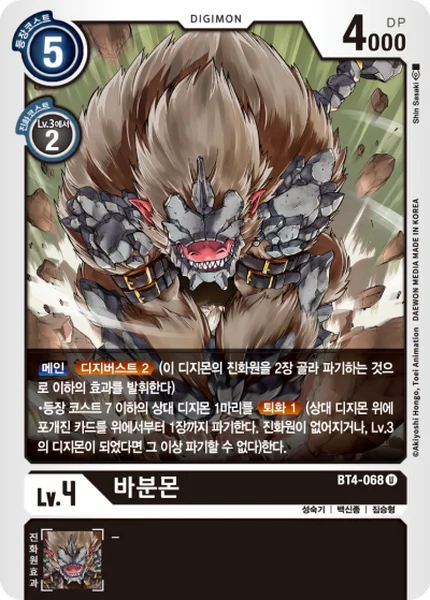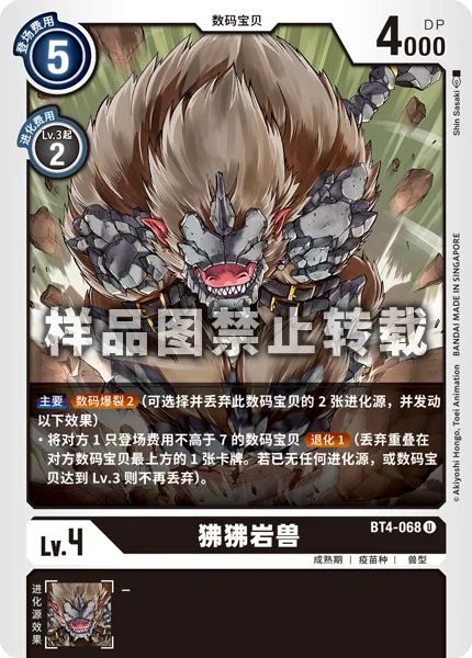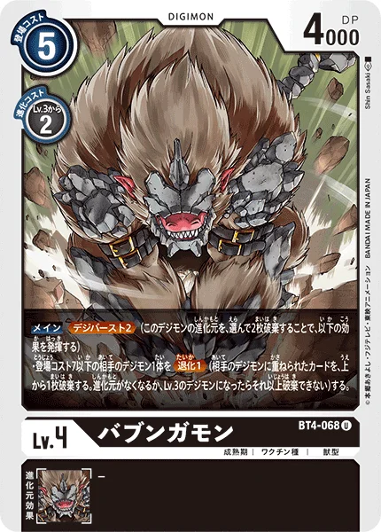 Main Digi-Burst 2 (Trash 2 of this Digimon's digivolution cards to activate the effect below.)・Trigger De-Digivolve 1 on 1 of your opponent's Digimon with a play cost of 7 or less. (Trash 1 card from the top of one of your opponent's Digimon. If it has no digivolution cards, or becomes a level 3 Digimon, you can't trash any more cards.)