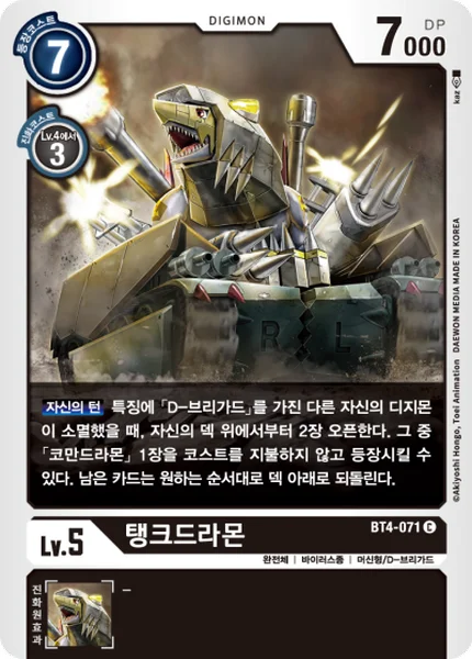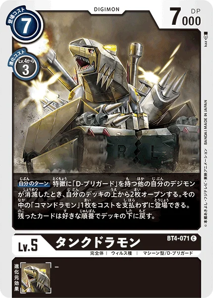 Your Turn When one of your other Digimon with [D-Brigade] in its type is deleted, reveal the top 2 cards of your deck. You may play 1 [Commandramon] among them without paying its memory cost. Place the remaining cards at the bottom of your deck in any order.
