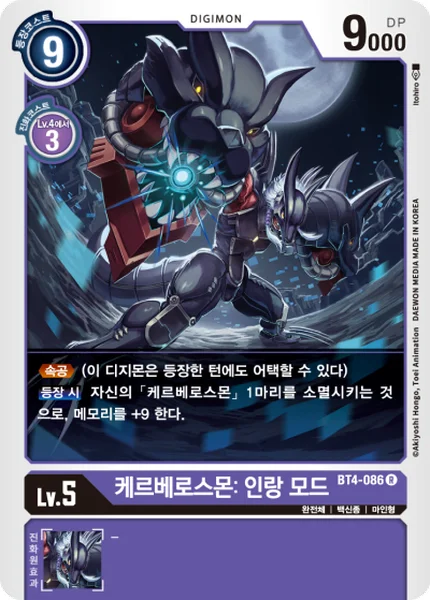 Rush (This Digimon can attack the turn it comes into play.)On Play You may delete 1 of your [Cerberusmon] to gain 9 memory.
