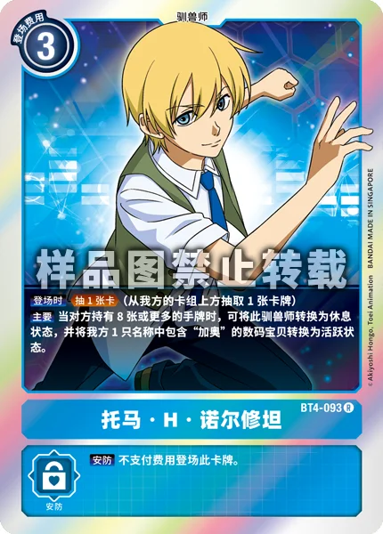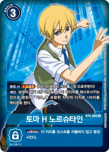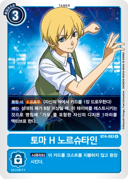 On Play Trigger Draw 1. (Draw 1 card from your deck.)Main If your opponent has 8 or more cards in their hand, you may suspend this Tamer to unsuspend 1 of your Digimon with [Gao] in its name.