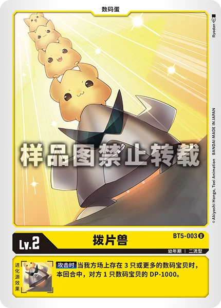 When Attacking If you have 3 or more Digimon in play, 1 of your opponent's Digimon gets -1000 DP for the turn.