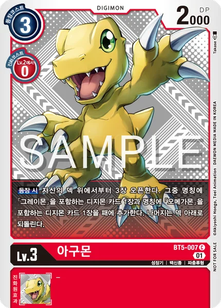 On Play Reveal 3 cards from the top of your deck. Add 1 Digimon card with [Greymon] in its name (other than [DoruGreymon], [BurningGreymon], or [DexDoruGreymon]) and 1 Digimon card with [Omnimon] in its name among them to your hand. Place the remaining cards at the bottom of your deck in any order.
