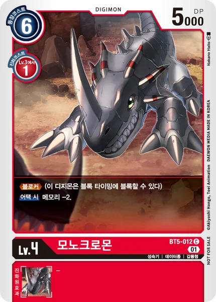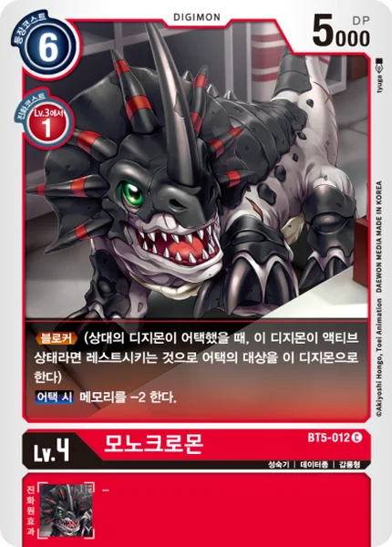 Blocker (When an opponent's Digimon attacks, you may suspend this Digimon to force the opponent to attack it instead.)When Attacking Lose 2 memory.