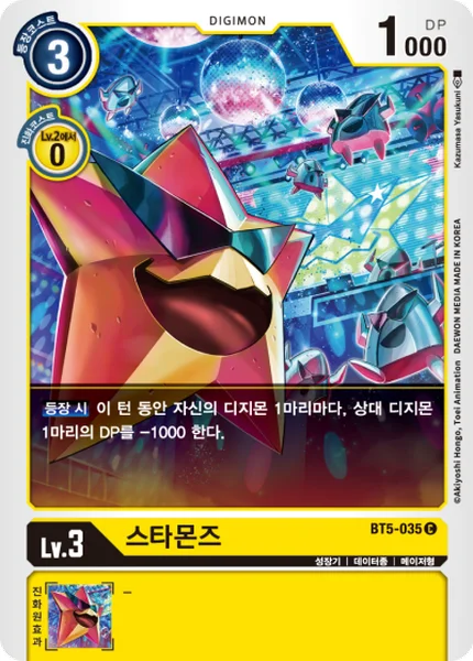 On Play For each Digimon you have in play, 1 of your opponent's Digimon gets -1000 DP for the turn.