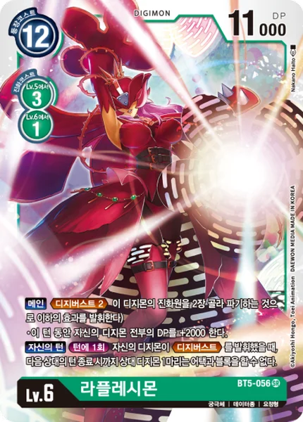 Main Digi-Burst 2 (Trash 2 of this Digimon's Digivolution cards to activate the effect below.)・All of your Digimon get +2000 DP for the turn.Your TurnOnce Per Turn When one of your Digimon activates Digi-Burst, 1 of your opponent's Digimon can't attack or block until the end of your opponent's next turn.