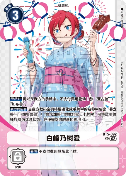 Main When digivolving one of your Digimon into a Digimon card in your hand with [Garurumon], [Omnimon], or [Greymon] (other than [DoruGreymon], [BurningGreymon], or [DexDoruGreymon]), in its name, you may suspend this Tamer to reduce the memory cost of the digivolution by 1.