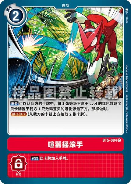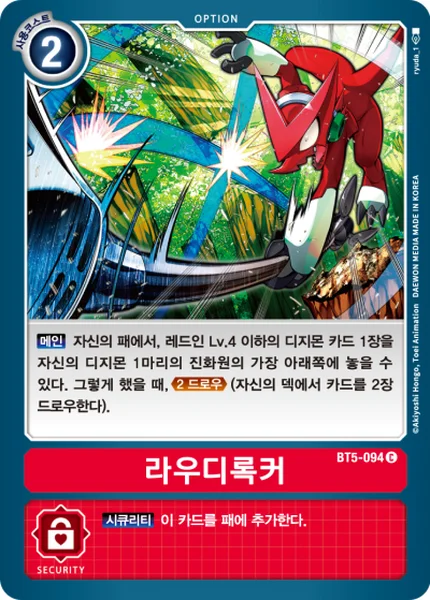 Main You may place 1 red level 4 or lower Digimon card from your hand under 1 of your Digimon as its bottom digivolution card. If you do, trigger Draw 2. (Draw 2 cards from your deck.)