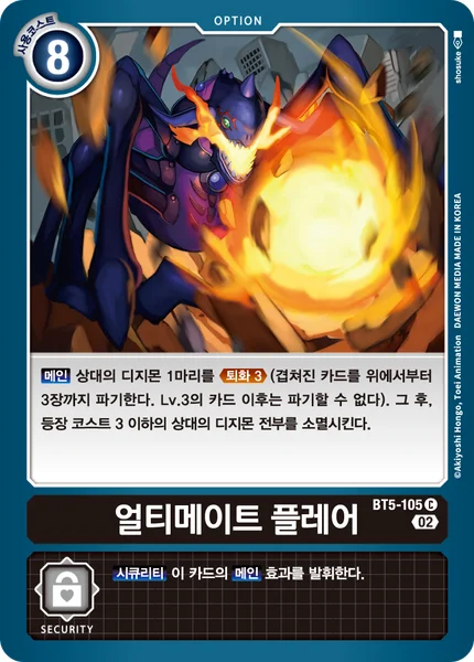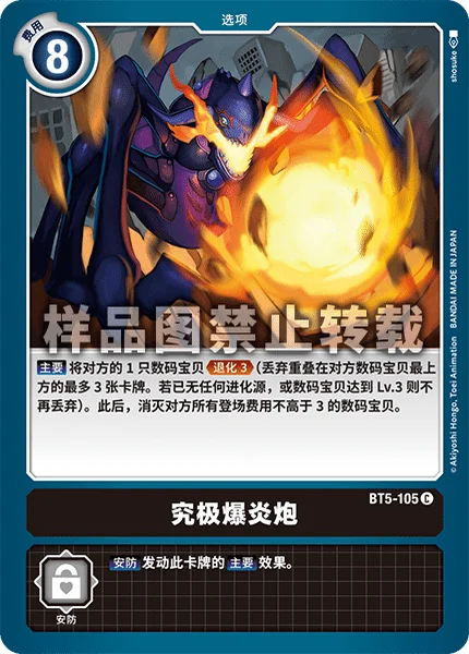 Main Trigger De-Digivolve 3 on 1 of your opponent's Digimon. (Trash up to 3 cards from the top of one of your opponent's Digimon. If it has no digivolution cards, or becomes a level 3 Digimon, you can't trash any more cards.) Then, delete all of your opponent's Digimon with play costs of 3 or less.